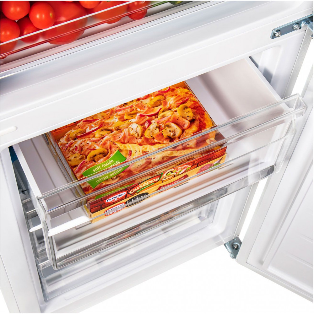 Климатический класс холодильника - ST. Это указывает на то, что он выполняет свои функции при температуре окружающей среды от +16°C до +38°С. Низкий уровень шума при работе компрессора (39 Дб) позволяет устанавливать его в кухне-гостиной. Класс энергопотребления: A+.
