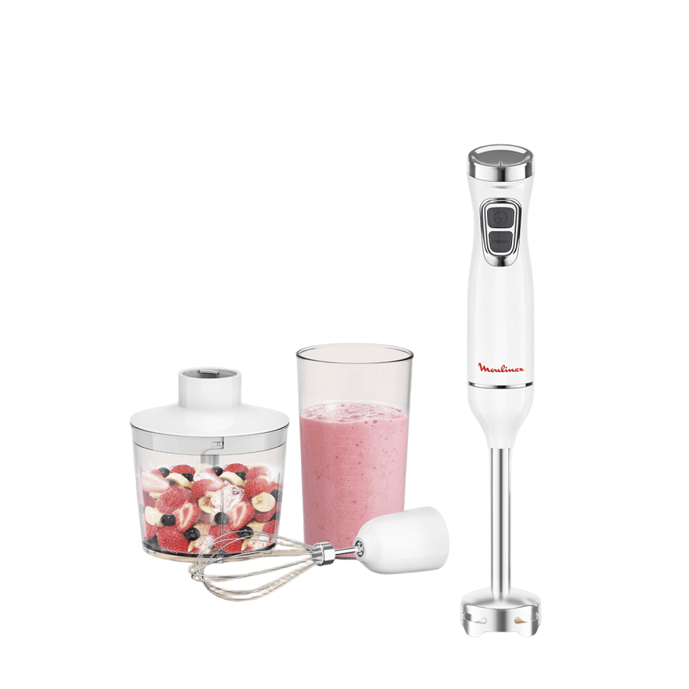 Оформить заказПогружной блендер Moulinex DD5431F0 — это мощное и функциональное устройство, предназначенное для быстрого и качественного смешивания, измельчения и взбивания различных ингредиентов. Благодаря мощности 600 Вт, режиму Турбо и комплекту универсальных аксессуаров, этот блендер поможет создать крем-супы, смузи, соусы, пюре и даже домашний майонез. Эргономичный дизайн и защита от брызг делают его использование комфортным и безопасным, а возможность ремонта в течение 15 лет обеспечивает долговечность.