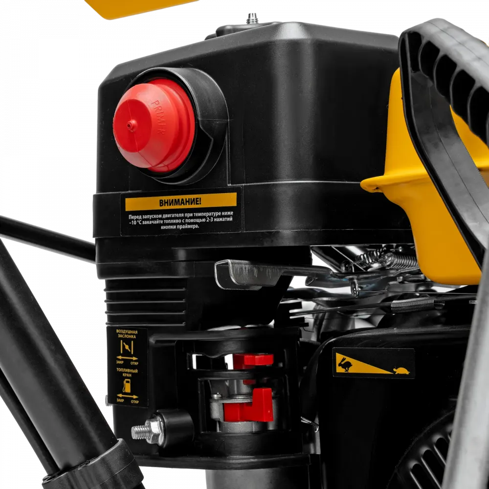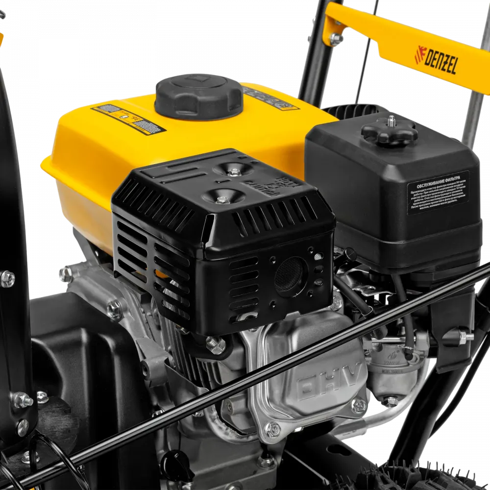 - Бензиновый двигатель 212 cc — стабильная мощность для уборки снега разной плотности.