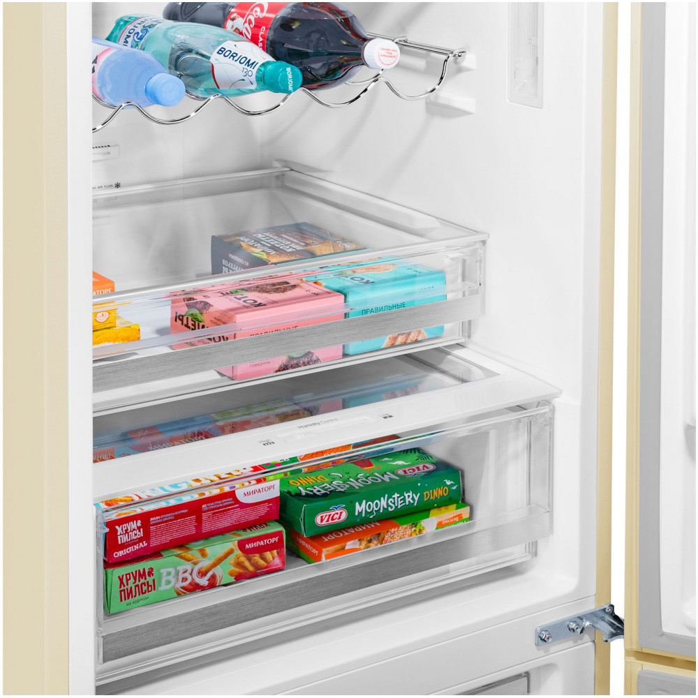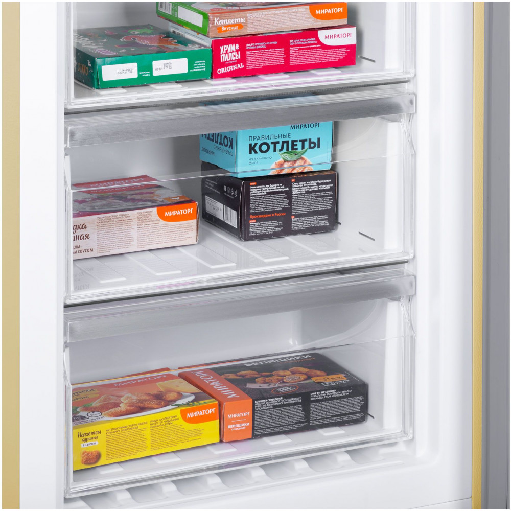 Система охлаждения всего холодильника - «No Frost». При использовании данной технологии, холодный сухой воздух равномерно распределяется при помощи вентилятора по всей камере. Благодаря этому на продуктах и внутренних поверхностях прибора не образовывается иней. Теперь вам никогда не придется размораживать холодильник.
