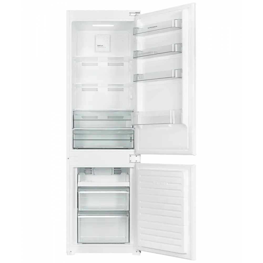 Встраиваемый холодильник Kuppersberg RBN 1763 — это современный и функциональный элемент бытовой техники, созданный на основе передовых технологий. Этот прибор сочетает в себе надежность, элегантность и эффективность. Стильный и современный дизайн в белом цвете позволяет ему гармонично вписаться в любой интерьер кухни. Габариты данной модели составляют 177 см в высоту, 54 см в ширину и 54.5 см в глубину, что делает его компактным и удобным для встраивания в нишу размерами 177-177.8×56-57×56 см.