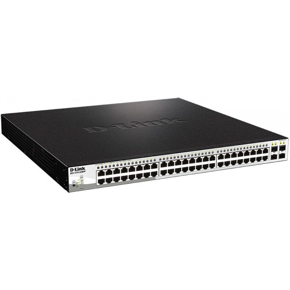 Настраиваемый коммутатор серии WebSmart DGS-1210-52MPP, оснащенный 48 портами 10/100/1000Base-T с поддержкой PoE и 4 портами 1000Base-X SFP, поддерживает технологию D-Link Green и расширенные функции управления и безопасности, обеспечивая высокую производительность и масштабирование сети. Функции управления включают SNMP, управление на основе Web-интерфейса, утилиту D-Link Network Assistant и упрощенный интерфейс командной строки (CLI) через Telnet. DGS-1210-52MPP поддерживает Auto Voice VLAN, обеспечивая максимальный приоритет для «голосового» трафика. Кроме того, коммутатор оснащен интеллектуальными вентиляторами, которые способны изменять скорость вращения в зависимости от температуры, что позволяет экономить электроэнергию и снизить уровень шума.