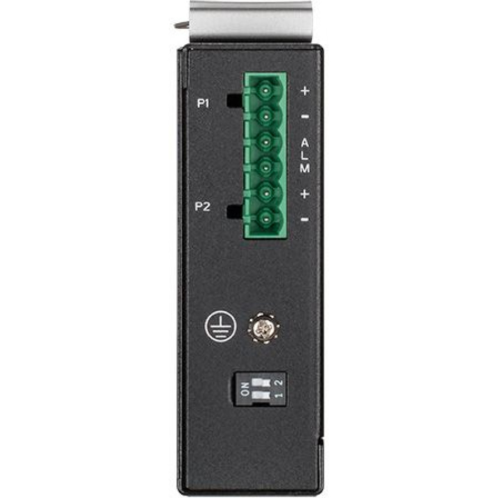 Металлический корпус (стандарт IP30) и широкий диапазон рабочих температур позволяют использовать DIS-100E-5W в неблагоприятных условиях окружающей среды. Высокий уровень электромагнитной совместимости обеспечивает устойчивость коммутатора к воздействию сильных электромагнитных помех, а пассивная система охлаждения – бесшумную работу коммутатора. Данное устройство может быть закреплено на стене или установлено на DIN-рейку с помощью соответствующих кронштейнов. DIS-100E-5W оснащен клеммным блоком для подключения до двух независимых источников питания DC1 и предоставляет пользователю возможность обеспечить бесперебойное питание в случае сбоя основного источника.