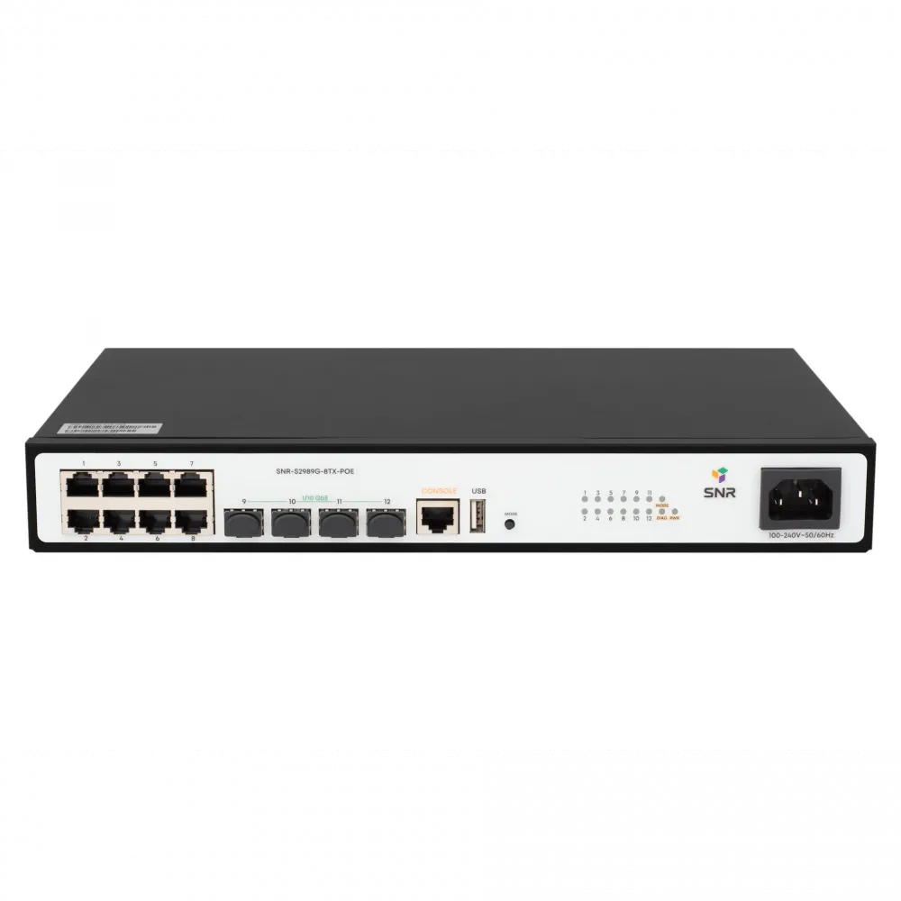 SNR-S2989G-8TX-POE имеет встроенный блок питания 90-264V AC.