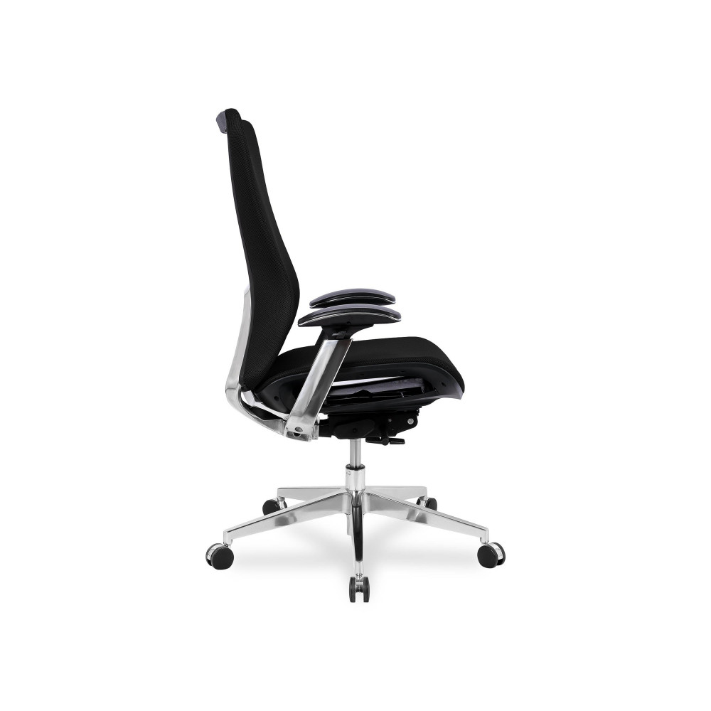 Анатомическое кресло из серии "Healthy seating" с широким набором регулировок, таких как: регулировка положения сиденья по горизонтали (Slider), синхронная регулировка наклона спинки и сиденья с фиксацией в нескольких положениях, регулировка подлокотников по высоте, регулировка накладок подлокотников в горизонтальной плоскости вперед-назад, наружу-внутрь(3D подлокотники). Крестовина, несущие элементы спинки и подлокотников выполнены из литого полированного алюминия. Обивка кресла - сетка. Отличное решение для многочасового времяпрепровождения в положении сидя.