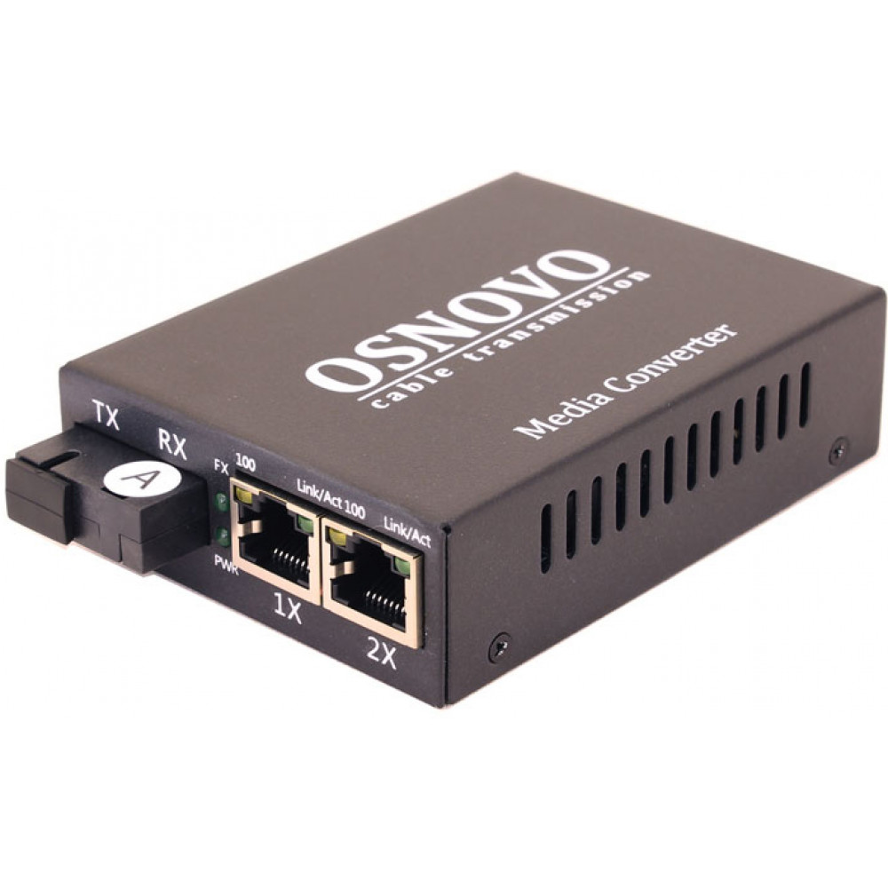 Оптический медиаконвертер Fast Ethernet. 2 медных порта (RJ45) 10/100Base-T (IEEE 802.3i, IEEE 802.3u, IEEE 802.3x), 1 оптический порт (SC, tx1310нм/rx1550нм) 100Base-FX. Дальность передачи по оптической линии до 20км (одномод, одно волокно (WDM мультиплексирование) (по многомодовому кабелю до 1,5км). Автоопределение MDI/MDI-X. Режимы работы: дуплекс/полудуплекс. В комплекте: БП DC5V(1A). Размеры(ШхВхГ): 70x25x93мм. Может устанавливаться в бокс для 19 дюймовой стойки модели О-142B (1 слот). Рабочая температура: 0…+60гр.С.