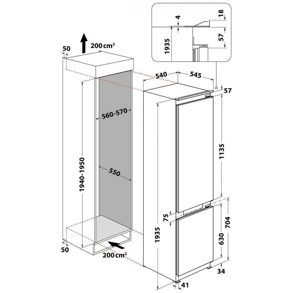 Оформить заказВстраиваемый холодильник Whirlpool WHC20T352 представляет собой компактное и функциональное устройство с габаритами 193×54,5×54 см. Его общий полезный объём составляет 250 литров, включая холодильную камеру вместимостью 182 литров и морозильную камеру объёмом 68 литров. Модель оснащается системой Full No Frost, обеспечивающей отсутствие льда и снежной шубы на стенках камер благодаря автоматической разморозке.
