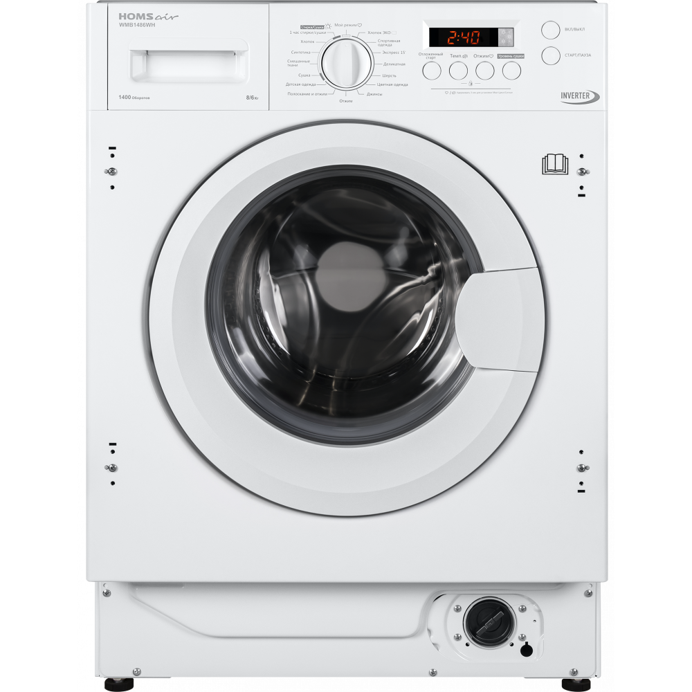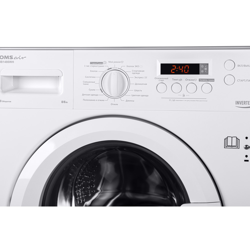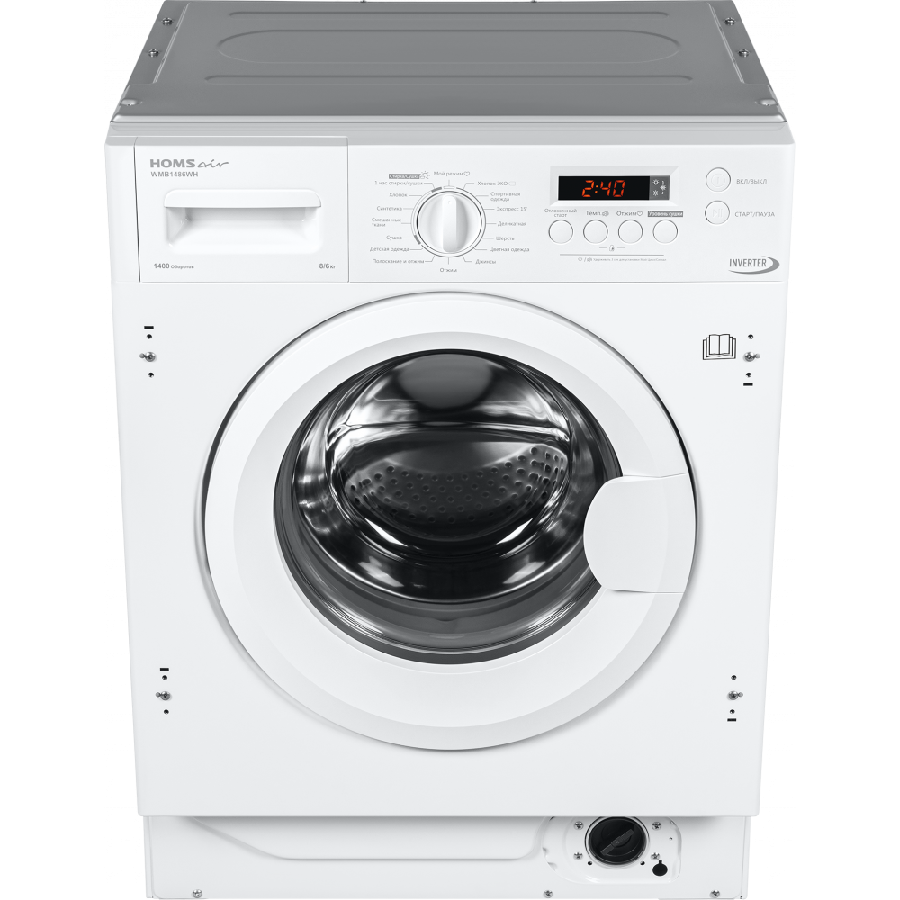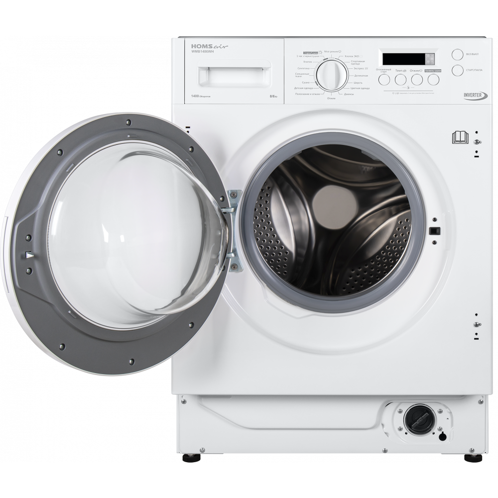 Встраиваемая стиральная машина HOMSair WMB1486WH имеет показатель загрузки до восьми килограммов белья и скорость отжима до тысячи четырёхсот оборотов в минуту, объединяющая в себе компактность и бесшумность встраиваемых моделей с технологичностью и функциональностью самых продвинутых решений. Полностью электронное управление со звуковым сигналом позволит в одно касание выбрать любую из интересующих вас шестнадцать программ, а удобный цифровой дисплей выведет всю необходимую информацию. Более того, по окончании хода программы раздастся звуковой сигнал.