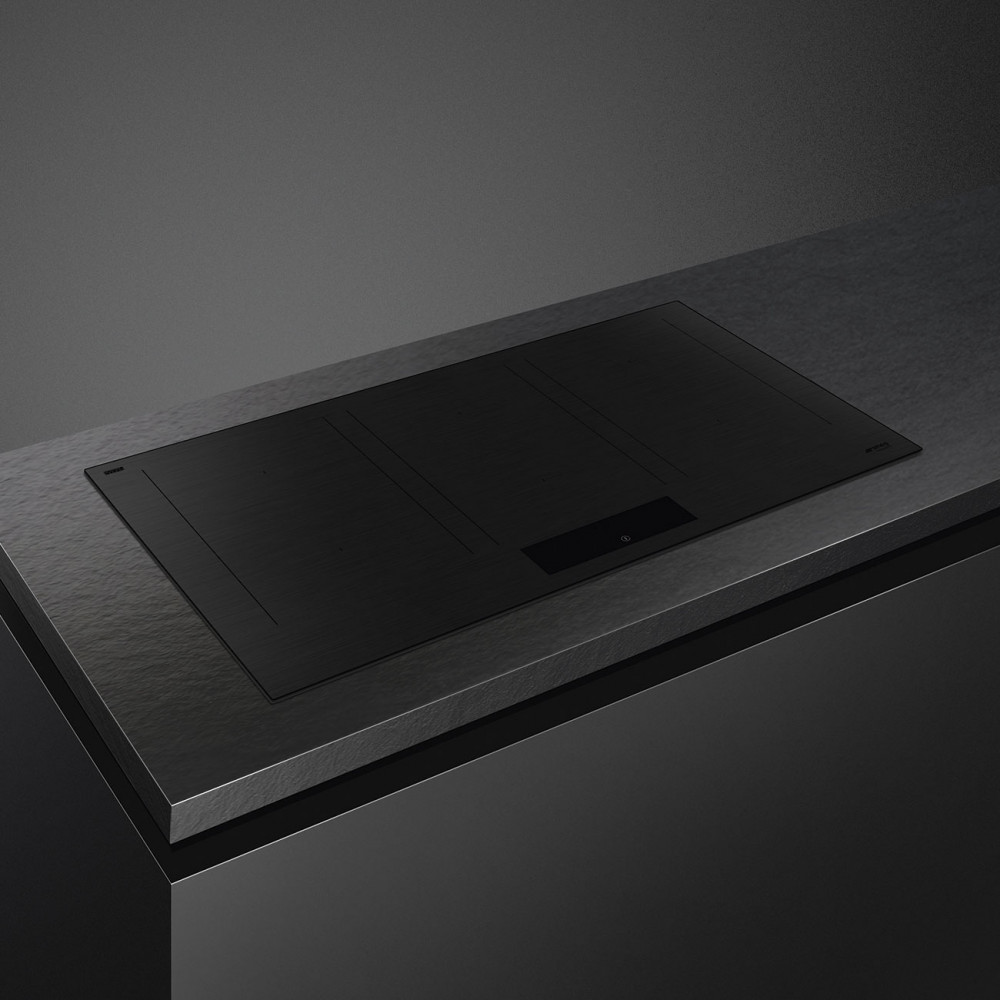 Устройство имеет ширину 90 см и глубину 51 см, что позволяет удобно разместить на нем несколько кастрюль и сковородок одновременно. Способ установки «вровень со столешницей» обеспечивает гладкость и гармоничность встроенного вида.