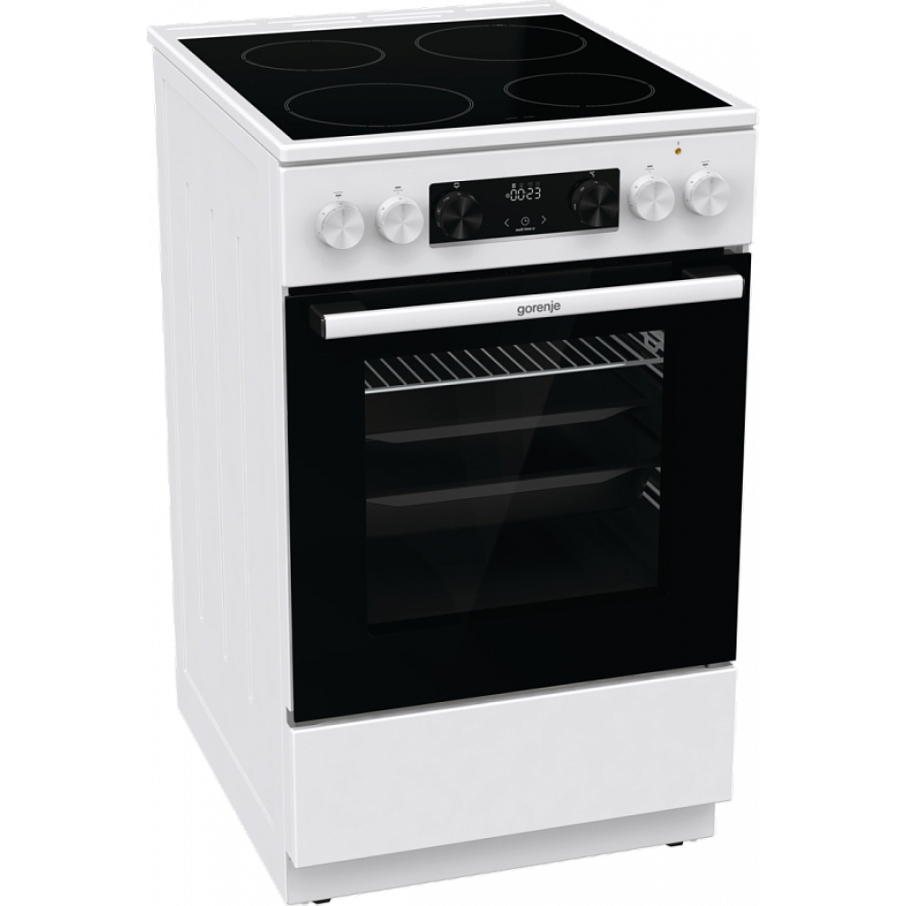 Электрическая плита Gorenje GEC5C42WG имеет корпус белого цвета, а дверцу духовки и варочную панель черного цвета. Такой дизайн смотрится лаконично и подойдет к вашей кухне. При помощи индикаторов остаточного тепла вы сможете определить состояние конфорки после завершения приготовления блюда, насколько сильно нагрета та или иная зона. Духовой шкаф является достаточно вместительным, объем его камеры составляет 70 л, вы сможете готовить несколько блюд одновременно на разных уровнях. Кроме этого, он выполнен по технологии BigSpace — обеспечивает дополнительный объем и свободную циркуляцию воздуха. Дверца девайса оснащена двойным остеклением. Конструкция включает 2 стекла+термоотражающее покрытие.