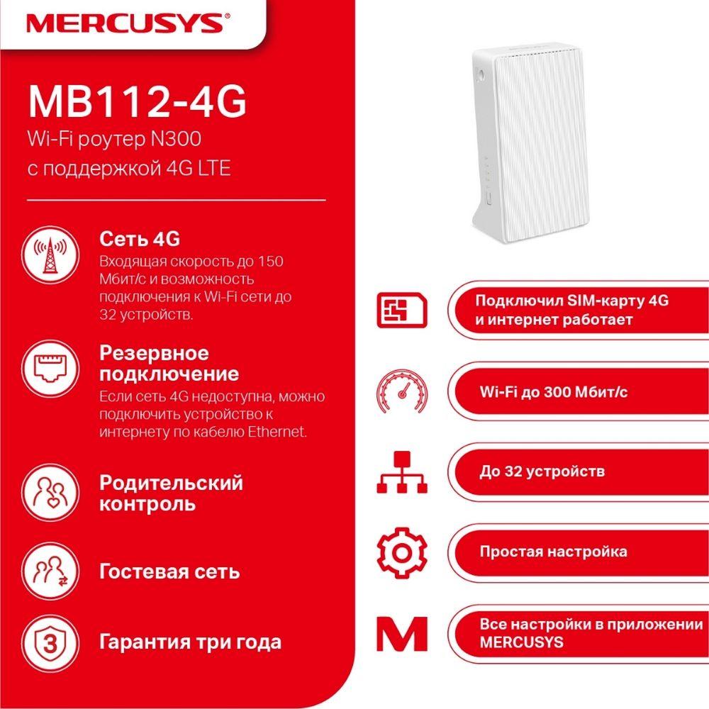 Wi-Fi маршрутизатор Mercusys MB130-4G – это компактное и мощное устройство, которое обеспечит вас стабильным беспроводным интернетом в любом месте. Благодаря встроенному 3G/LTE-модему этот роутер станет идеальным решением для тех, кому важно оставаться на связи даже там, где нет проводного подключения. С его помощью вы легко организуете домашнюю или офисную сеть, подключите несколько устройств и насладитесь быстрым интернетом без задержек.