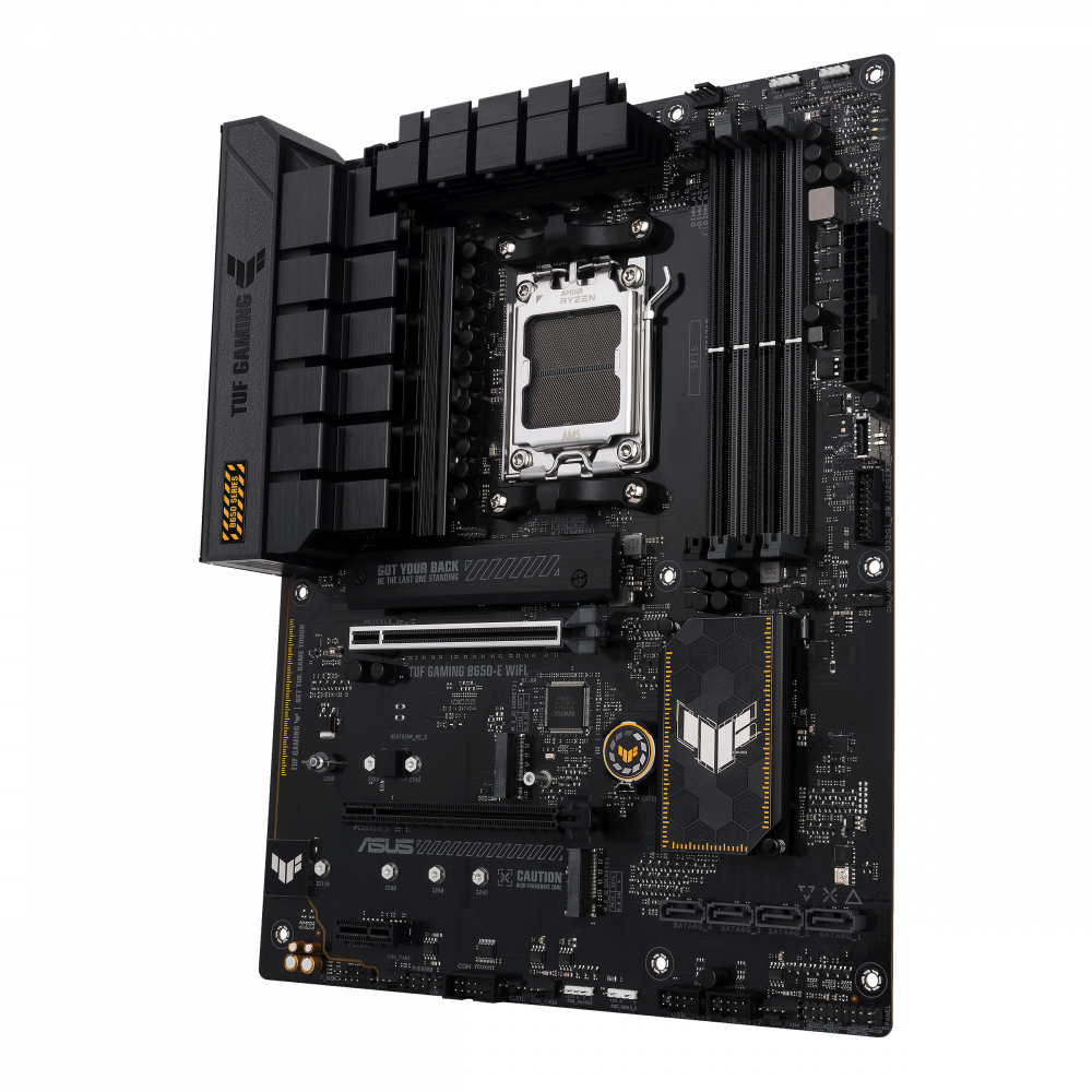 ASUS TUF GAMING B650-E WIFI использует все основные элементы новейшего разъема AM5 для процессоров AMD Ryzen для настольных ПК и сочетает их с готовыми к игре функциями и проверенной надежностью. Эта материнская плата, оснащенная компонентами военного уровня, усовершенствованной системой питания и комплексной системой охлаждения, превосходит все ожидания, обеспечивая надежную и стабильную производительность для продолжительных игр. Материнские платы TUF GAMING также проходят строгие испытания на выносливость, чтобы гарантировать, что они смогут работать в условиях, в которых другие могут выйти из строя. Эстетически эта модель включает в себя прочные элементы черного цвета и геометрические элементы дизайна, отражающие надежность и стабильность, которые характеризуют серию TUF GAMING.