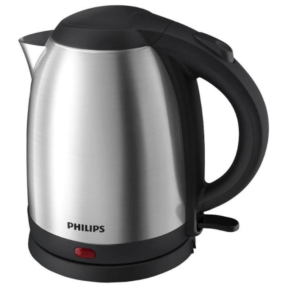 Чайник Philips HD9306 Silver/Black с металлическим корпусом и современным приятным дизайном рассчитан на быстрое кипячение 1.5 литров воды. На ручке устройства расположена удобная кнопка для открывания крышки, что обеспечивает дополнительный комфорт при наполнении. Нагревательный элемент скрыт специальным диском, который существенно облегчает уход за внутренней поверхностью. Индикация включения представляет собой овальную лампочку, которая загорается ярким светом при начале работы устройства. Основание позволяет разворачивать прибор вокруг своей оси. При снятии с подставки или закипании чайник автоматически отключается, а если воды недостаточно или нет, включить его будет невозможно.