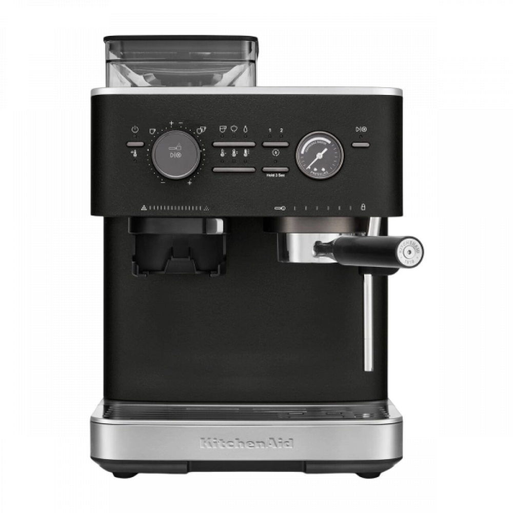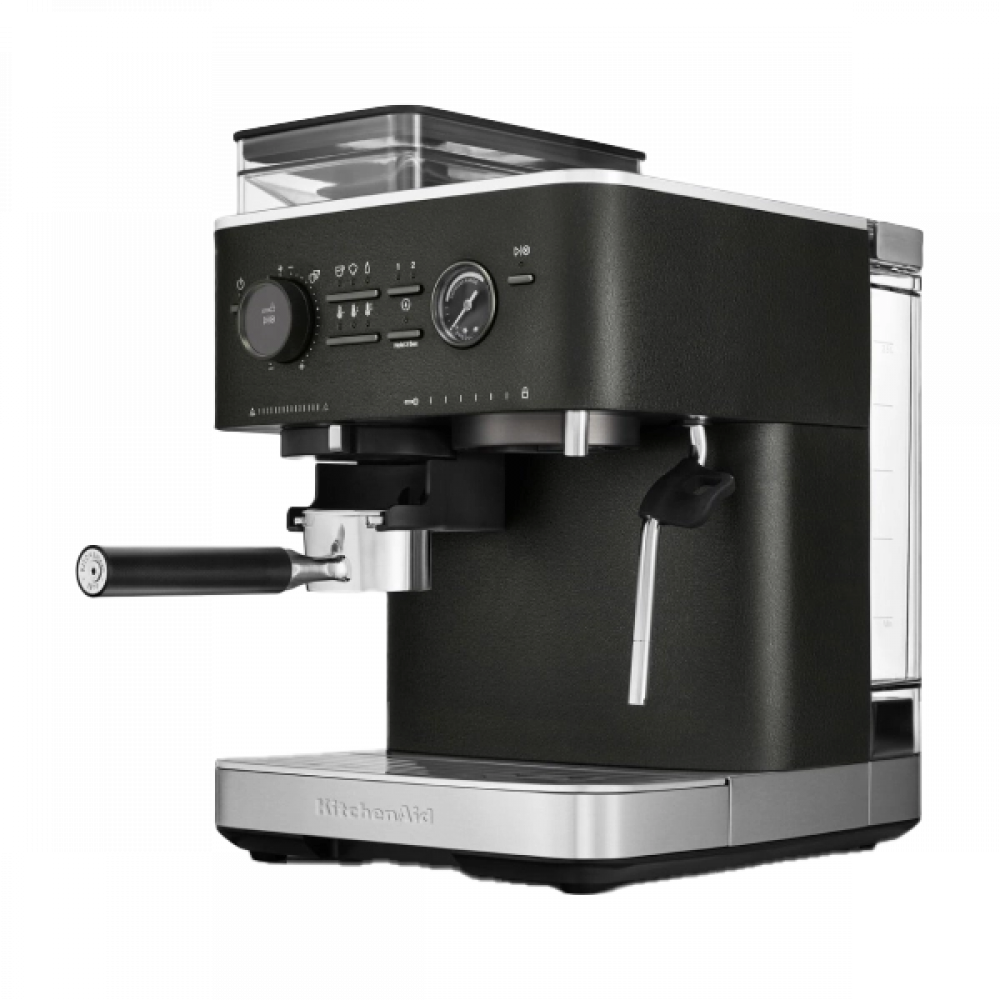 Оформить заказПолуавтоматическая кофемашина KitchenAid 5KES6551EBK выполнена в элегантном цвете «чёрный чугун», который придаёт устройству роскошный внешний вид. Прочный металлический корпус обеспечивает долговечность и надёжность конструкции. Мощность и производительность кофемашины впечатляют: давление помпы достигает 15 бар, что гарантирует насыщенный вкус эспрессо и плотную пенку. Объём резервуара для воды 2,5 литра позволяет приготовить до 33 порций напитка без дополнительного наполнения.