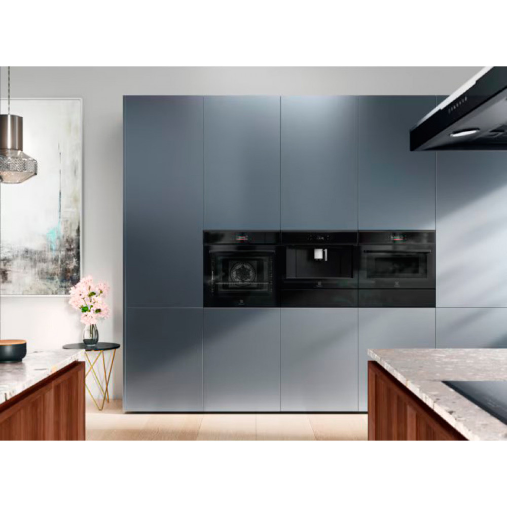 Строгие линии и чёрное исполнение подчёркивают премиальный внешний вид устройства и отлично сочетаются с другой встраиваемой техникой Electrolux.