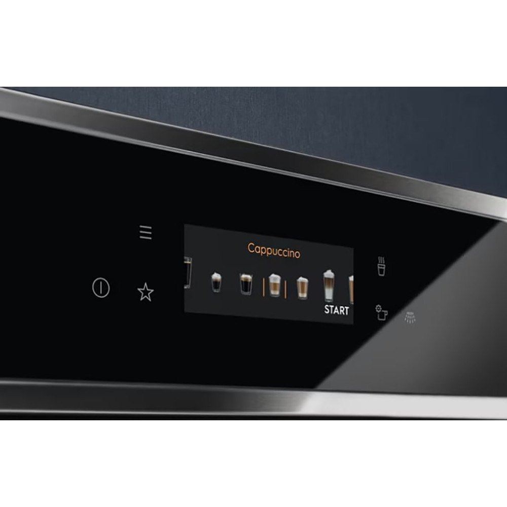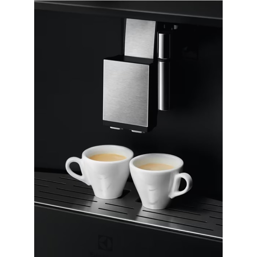 Сочетание нержавеющей стали и чёрных элементов подчёркивает премиальный внешний вид кофемашины и делает её идеальным дополнением к встраиваемой технике Electrolux.