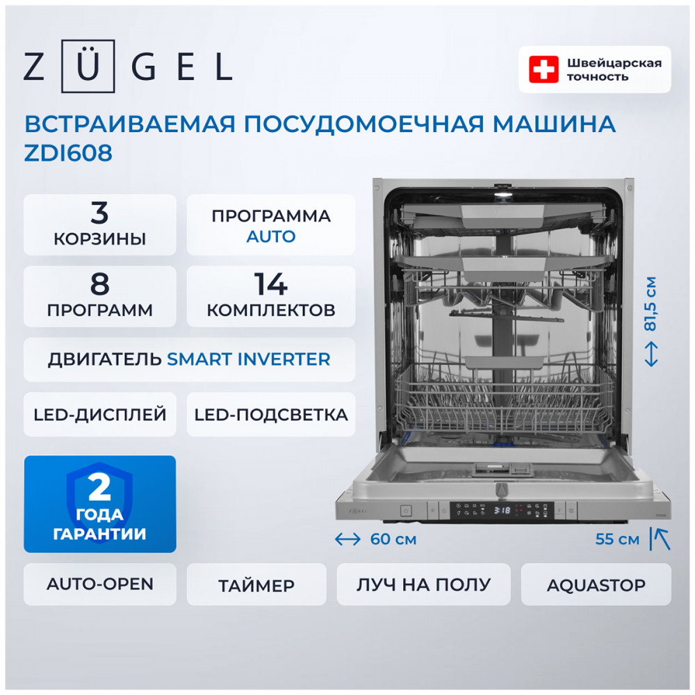 Встраиваемая посудомоечная машина Zugel ZDI608