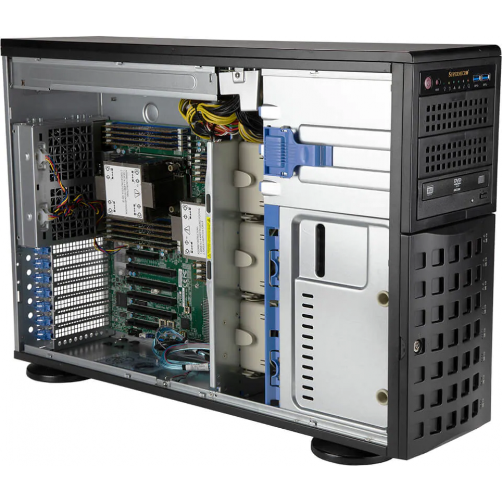 Форм-фактор Tower 4U делает SuperMicro SYS-740P-TR идеальным выбором для офисов и дата-центров, где требуется высокая производительность и надежность. Более крупный размер позволяет разместить дополнительные компоненты и обеспечить лучшее охлаждение, что особенно важно для интенсивных вычислительных задач.