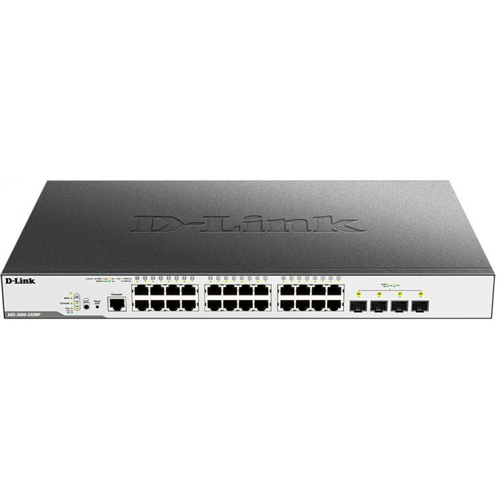Гигабитные коммутаторы серии DGS-3000 входят в линейку управляемых коммутаторов D-Link уровня 2 и предназначены для использования в сетях Metro Ethernet и сетях кампуса. Коммутатор DGS-3000-28XMP оснащен 24 портами 10/100/1000Base-T с поддержкой PoE и 4 портами 10GBase-X SFP+.