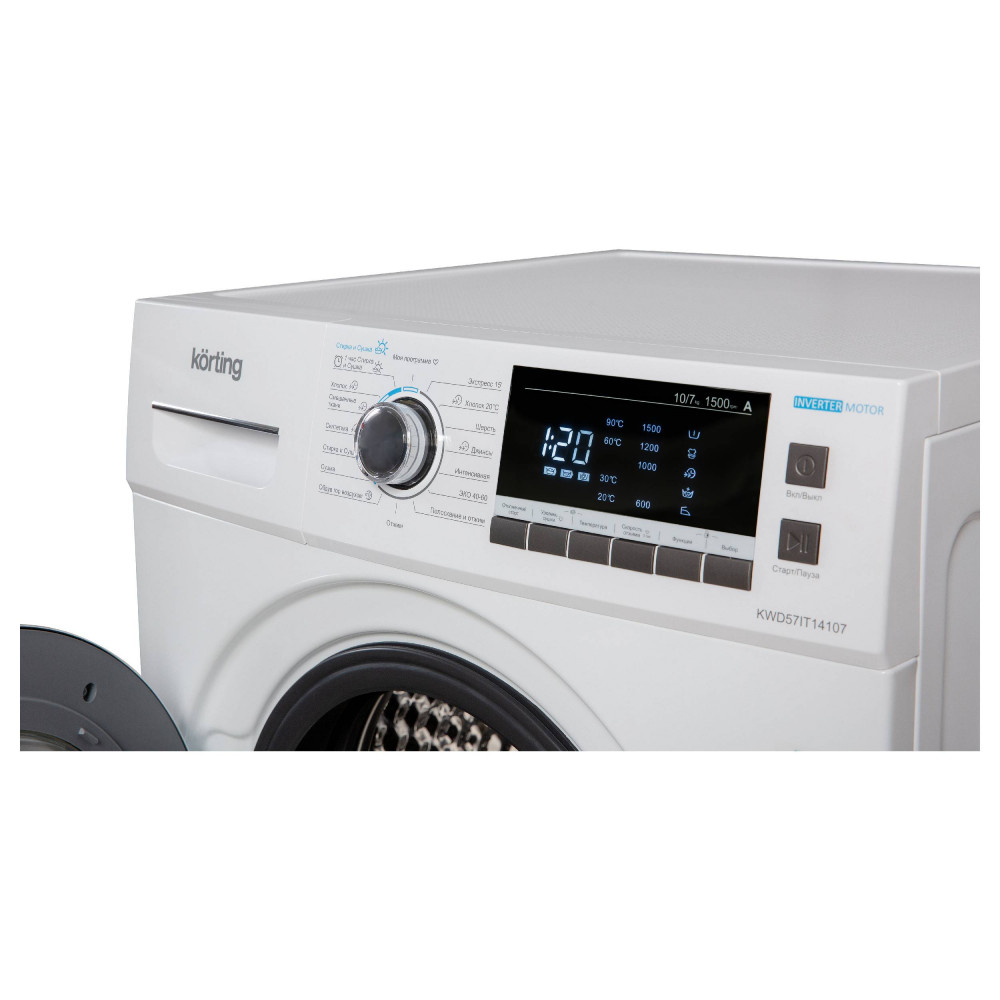 Дисплей отлично дополнит функционал стиральной машины и поможет увидеть всю необходимую информацию, такую как температуру стирки, количество установленных оборотов, а главное вы всегда сможете посмотреть, сколько осталось времени до завершения стирки, что позволит спланировать свои дела.