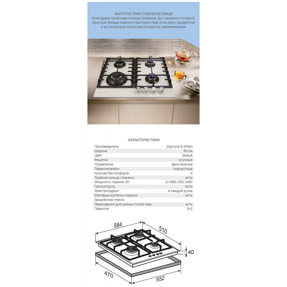 Газовая варочная панель Zigmund & Shtain MN 197.61 W