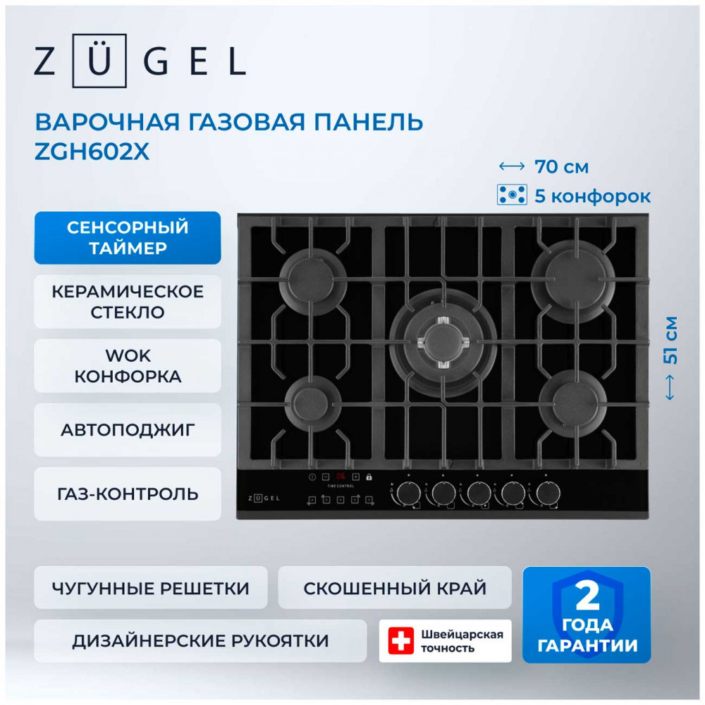 Газовая варочная панель Zugel ZGH602X