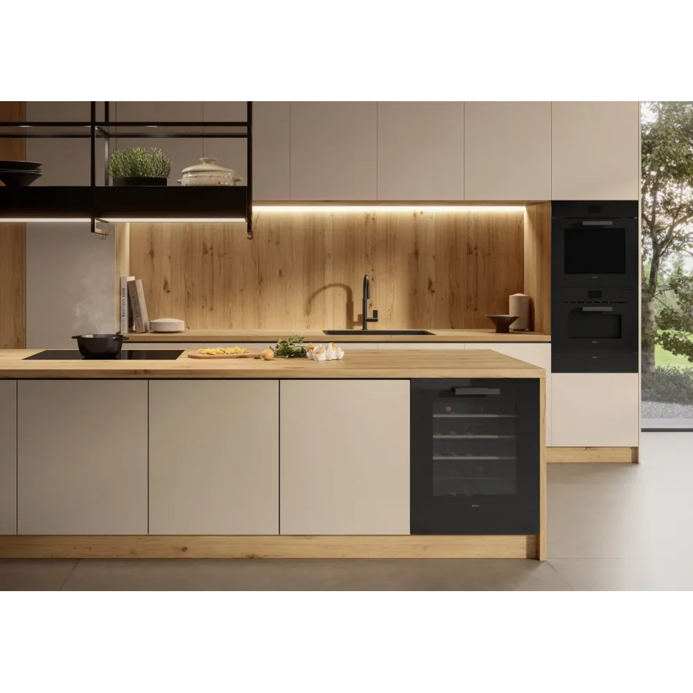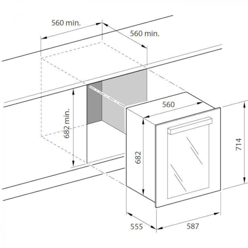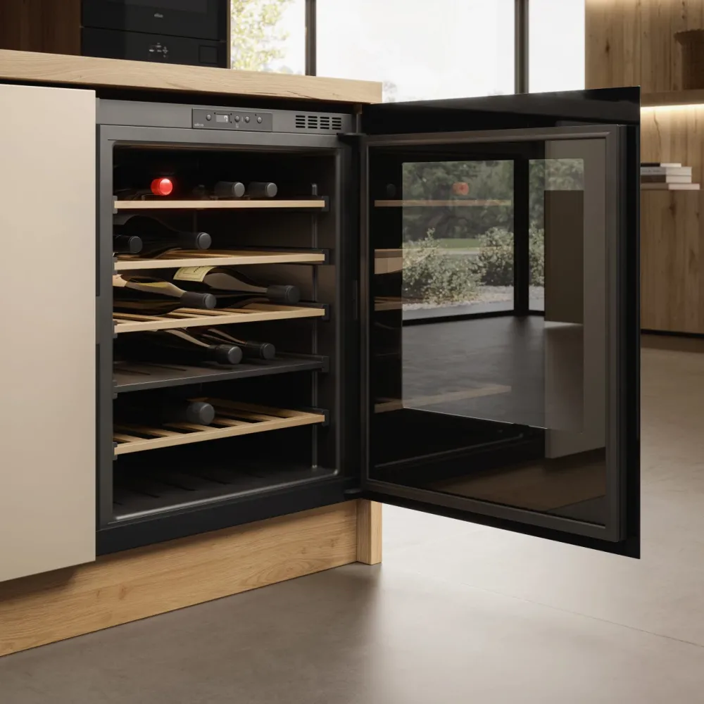 Встраиваемый винный шкаф ELICA VERITAS BI36 BL оснащен двумя пассивными температурными зонами, с разделительной полкой. Полки с телескопическими направляющими. Стандартная загрузка винного шкафа - 36 бутылок.