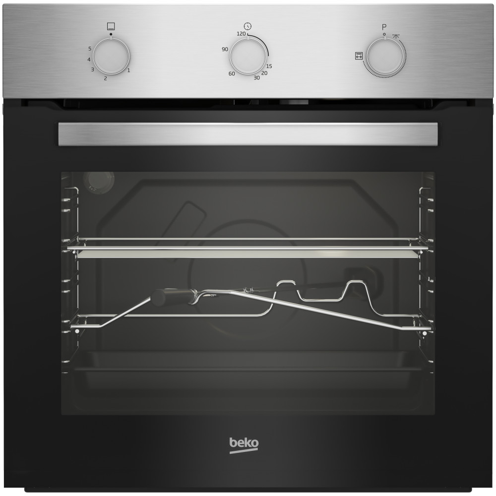 Газовый духовой шкаф Beko BBIGT21100X с откидным электрическим грилем; автоматический электроподжиг; поворотные переключатели; металлические направляющие; объем - 72л; 3 стекла дверцы; 1 решетка; 1 противень; вертел. Цвет Нержавеющая сталь; Материал панел