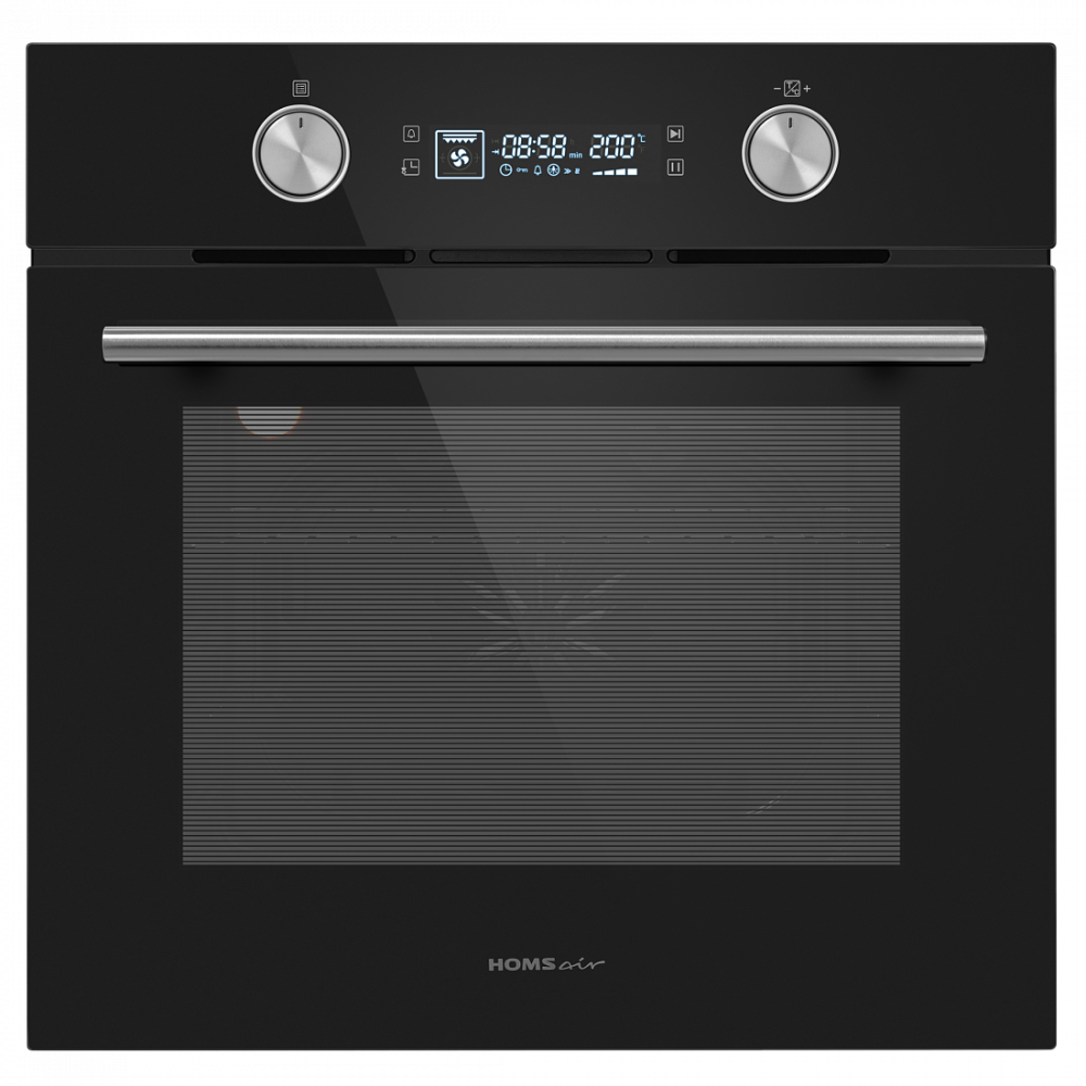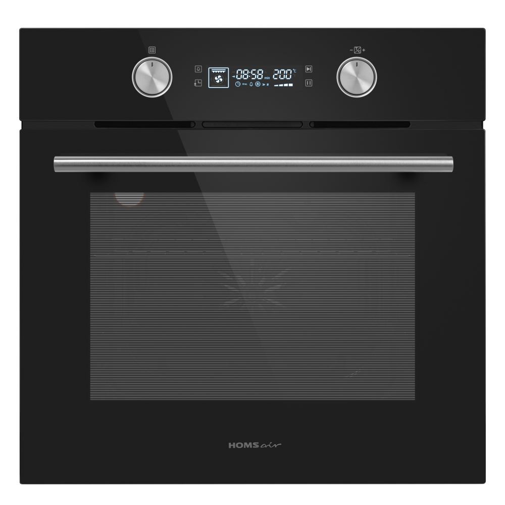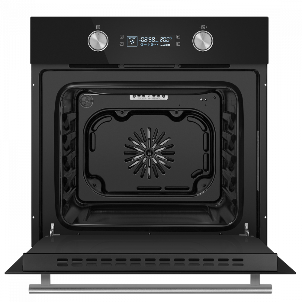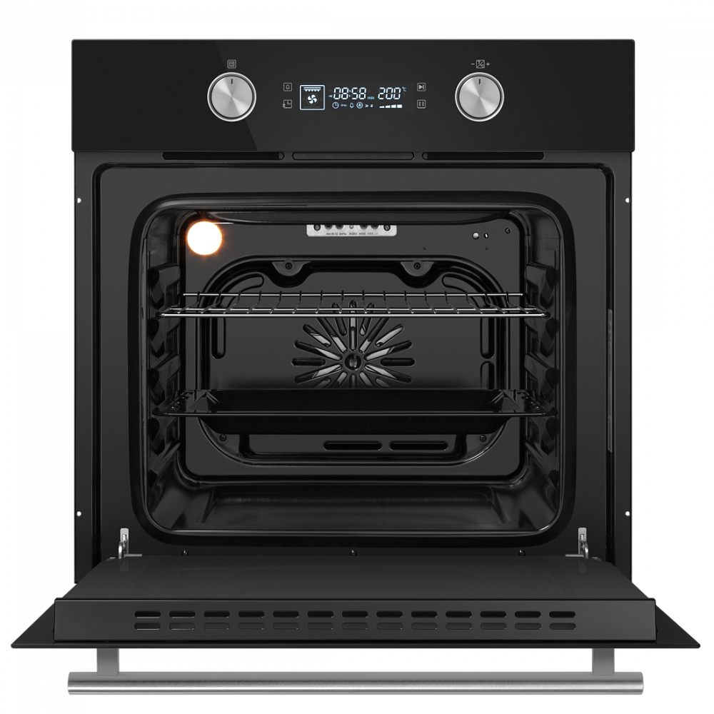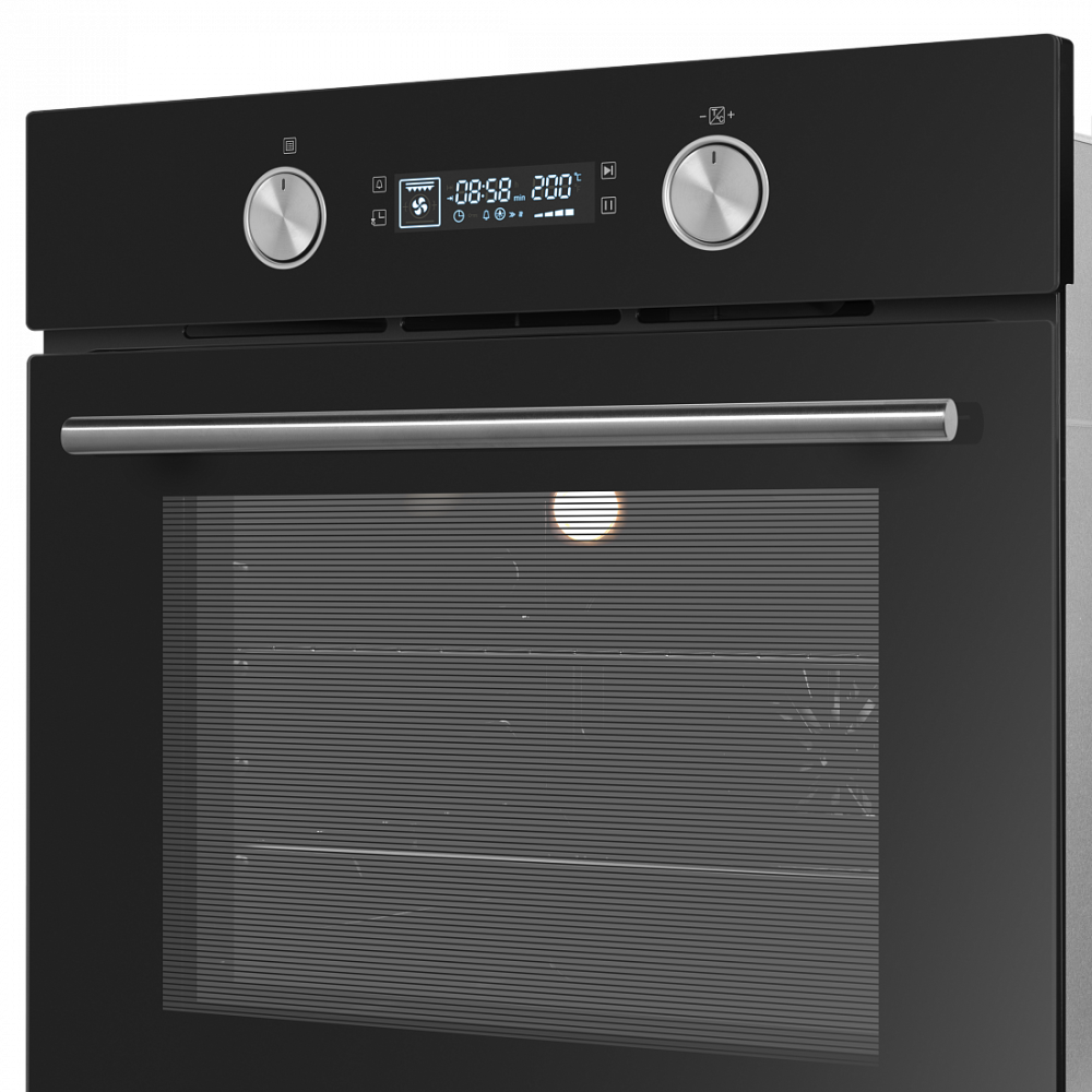 Электрический встраиваемый духовой шкаф с фронтальной панелью из высококачественного жаропрочного стекла. Дизайн модели дополнен утапливаемыми регуляторами PUSH PULL увеличенного диаметра.