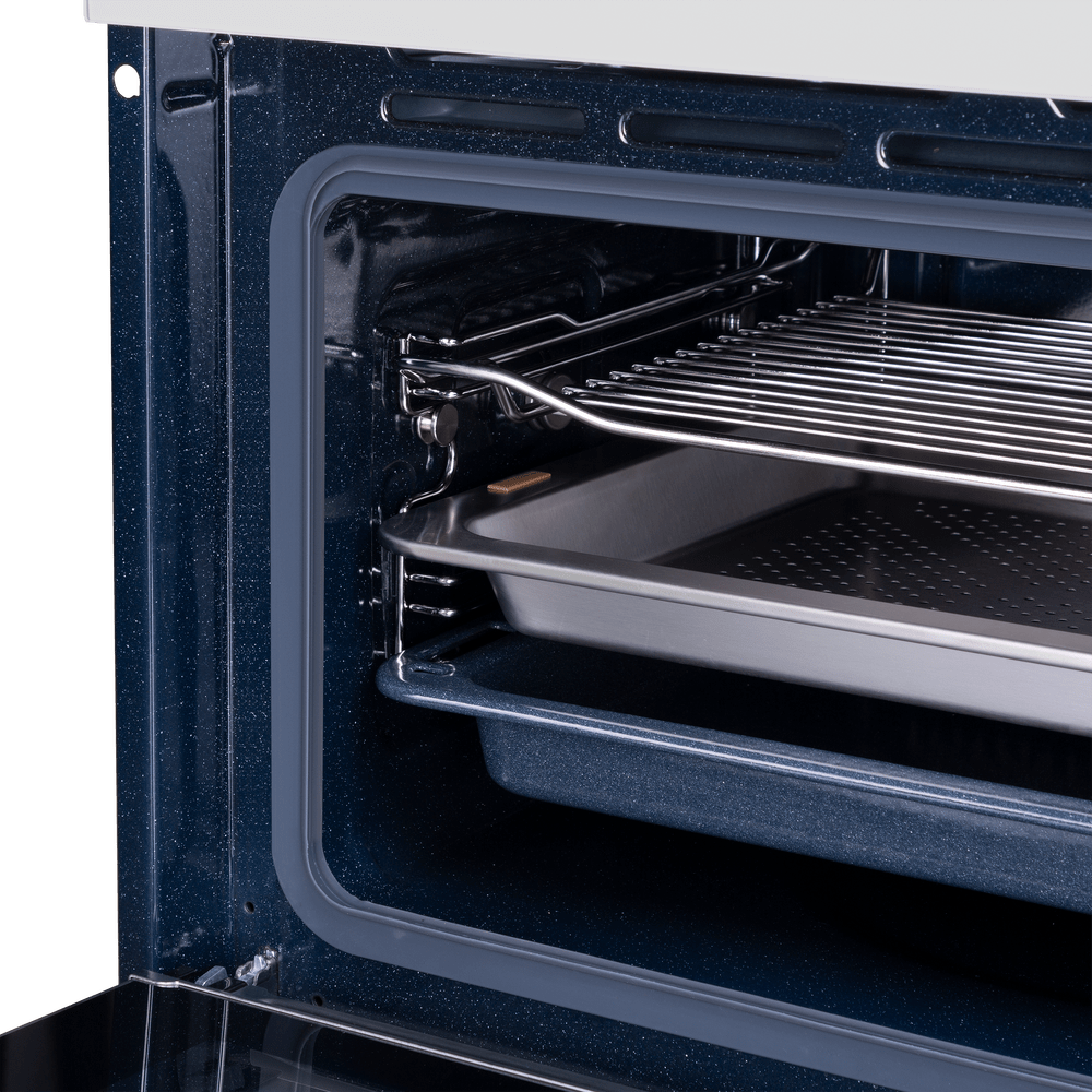 Дверца духового шкафа состоящая из 2 стекол - это гарантия медленного нагревания внешнего стекла, что создает холодный фронт и делает процесс приготовления безопасным исключая возможность ожога при касании.