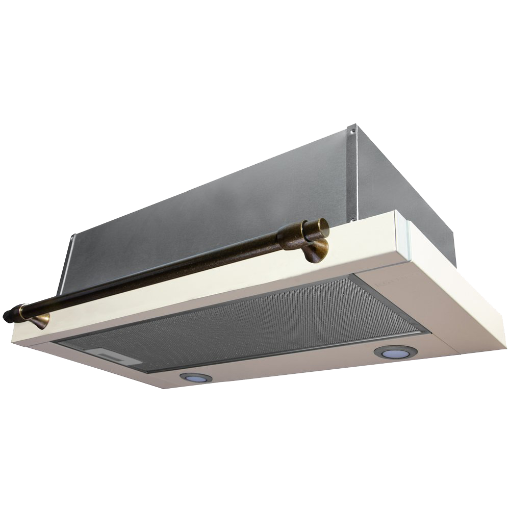 Это утонченные цвета, бронзовая или деревянная окантовка кухонной вытяжки, которые создают идеальное сочетание с натуральными материалами и фурнитурой кухонной мебели в классическом или ретро стиле.